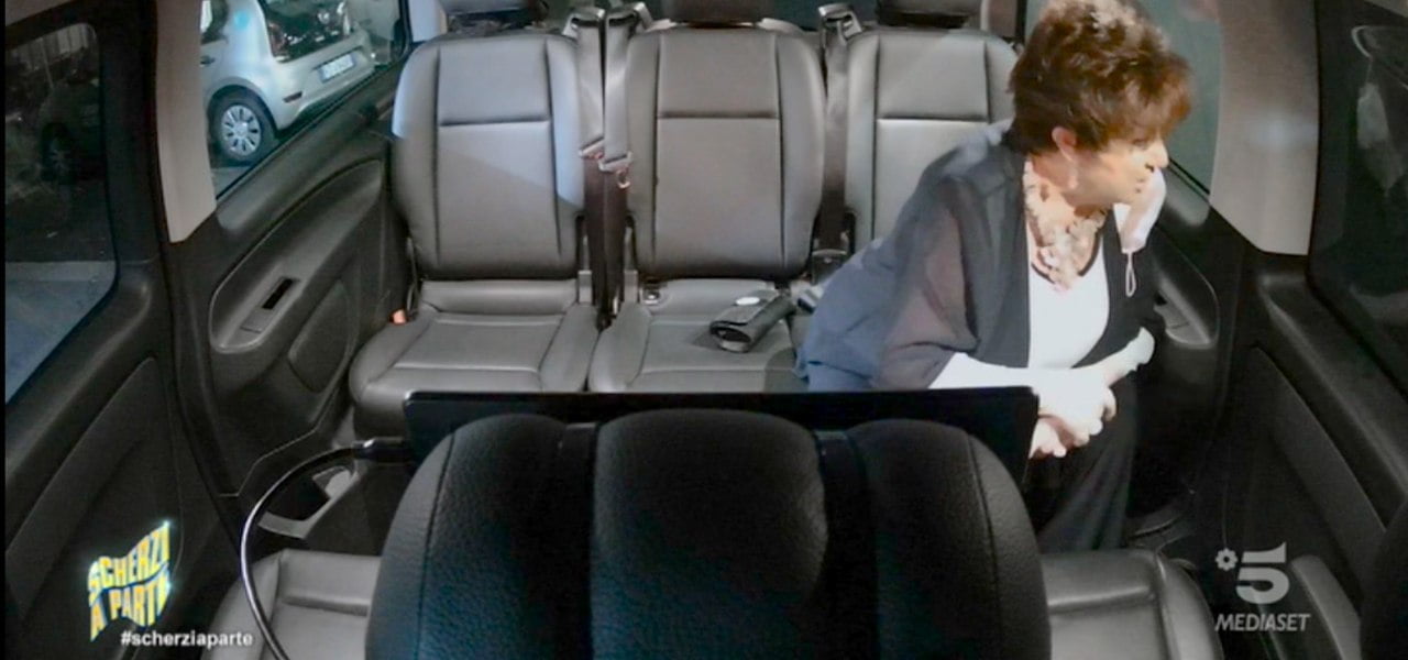 Lo spostamento della malcapitata Orietta Berti dall’hotel agli studi di Canale 5 sull’auto mandata da Scherzi a parte si trasforma in un incubo. Il mezzo è un modello super-tecnologico, con assistente vocale – la cui voce è quella della complice Manuela Arcuri – capace di controllare anche la guida. Qualcosa, tuttavia, va storto. Anche quest’auto presenta un guasto e la cantante resta accidentalmente bloccata dentro.