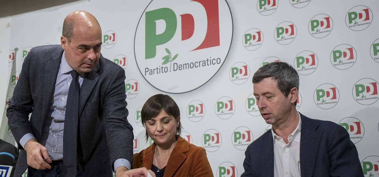 Nicola Zingaretti, il suo vice Andrea Orlando e Debora Serracchiani (Foto LaPresse)