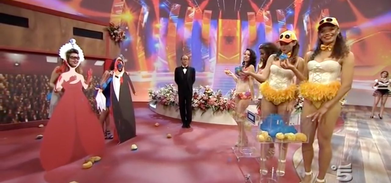 «Buonasera, Ferrante Orsola, 18 anni… giovane!», urla la concorrente quando viene sorteggiata a Ciao Darwin 7. «Buonasera a tutti, Laura Pomilio, 44 anni… mature», si presenta invece l’altra. Il viaggio nel tempo che devono compiere è nel Festival di Sanremo. «Chi è quello che sta accanto a lei?», chiede Paolo Bonolis e la giovane confonde Beppe Vessicchio con Giuseppe Verdi. Quando il conduttore suggerisce il nome, lei allora si gioca la carta Grillo, fallendo miseramente. Le due poi confondono i testi con i titoli. «Questo è troppo, quando è troppo è troppo… Poi ci troveremo come le star, amici…», si sente dire a Paolo Bonolis che imbocca il percorso per raggiungere le concorrenti. E prende di mira la giovane, contro il cui volto preme una spugna intrisa di colore blu sporcandole completamente la faccia, tra le risate del pubblico e della stessa concorrente consapevole degli strafalcioni commessi.