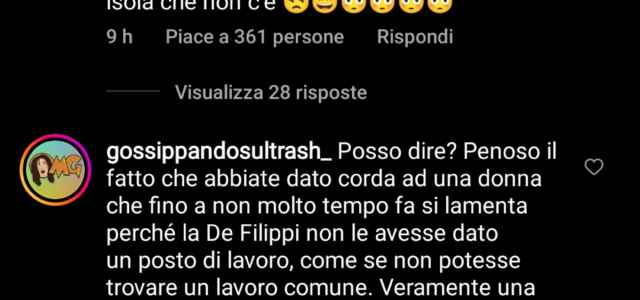 Nel frattempo, le reazioni dei telespettatori attivi sui social, rispetto all’ingaggio della sarda nel cast dei concorrenti del gioco dei vipponi, sono tra le più disparate: “Quest’anno vince Mark Caltagirone”, si legge tra i commenti social postati a margine del video di presentazione della terza concorrente del Grande fratello vip 7, poi emergono ancora tra gli altri polemici: “Ricominciamo con la tarantella di Caltagirone…ogni anno c’è un teatrino ormai!”; “Ma che senso ha far entrare sempre le stesse persone?!”; “Quest’anno sarà peggio degli altri (il Gf vip)”. Poi, oltre ai messaggi degli utenti comuni, spunta la reazione social vip di Guendalina Canessa: “Le piacerà farsi massacrare, io dopo la figura di m* che fece mi sarei trasferita per sempre sull’isola che non c’è “.