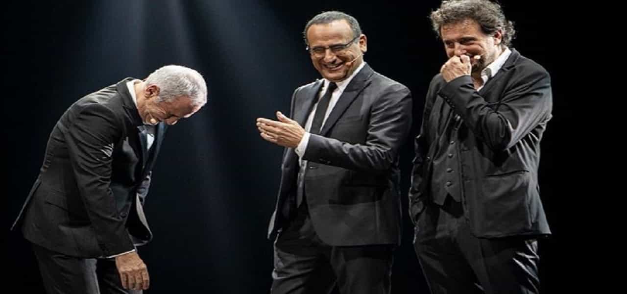 portano su Raiuno lo show dei record. Dopo aver fatto divertire tutto il pubblico che li ha seguito a teatro, i tre amici, questa sera, chiuderanno in grande stile un’avventura magica che li ha portati a condividere un’esperienza unica. Oltre a divertirsi e a trascorrere insieme momenti unici, i tre amici, hanno regalato al proprio pubblico un vero e proprio varietà fatto di gag, momenti musicali, divertenti siparietti, ma anche momenti di riflessione e che emozioneranno il pubblico. Sia Conti che Panariello che Pieraccioni hanno regalato ai fans una parte intima del proprio vissuto dando così vita ad uno show unico e che è considerato un vero e proprio evento televisivo.