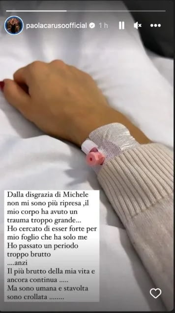 Proprio il dramma della grave malattia di suo figlio l’ha portata a crollare e a finire in ospedale. “Dalla disgrazia di Michele non mi sono più ripresa, il mio corpo ha avuto un trauma troppo grande”, ha scritto Paola postando una foto che mostra il suo ricovero. Ha quindi proseguito: “Ho cercato di esser forte per mio figlio che ha solo me. Ho passato un periodo troppo brutto, anzi il più brutto della mia vita e ancora continua. Ma sono umana e stavolta sono crollata”.