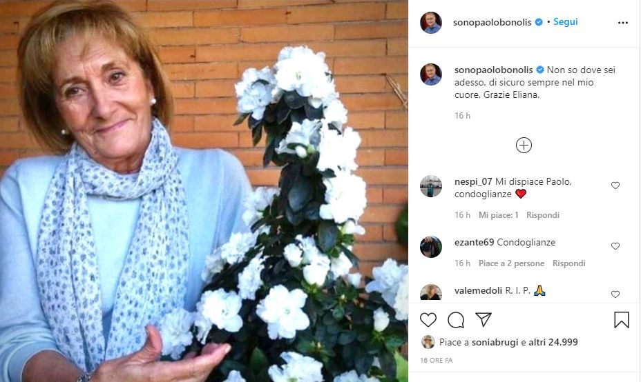 Tantissimi coloro che hanno espresso le condoglianze alla donna scomparsa (non si sa di cosa sia deceduta ne tanto meno l’età), e fra coloro che hanno commentato il post di Paolo Bonolis anche Laura Cremaschi, l’ex “Bonas” di Avanti un altro nonché membro attuale del “Salottino”, e Francesco Cozzolino, denominato XXXL. Quest’ultimo ha commentato: “Mancherà a tutti noi, sempre sorridente, tanto gentile e disponibile, e da lei ricevevi sempre belle parole”.