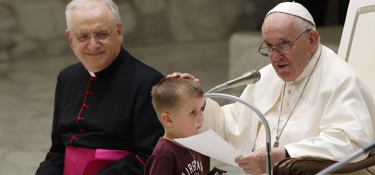 Papa Francesco con un bambino in Udienza Generale (LaPresse, 2022)