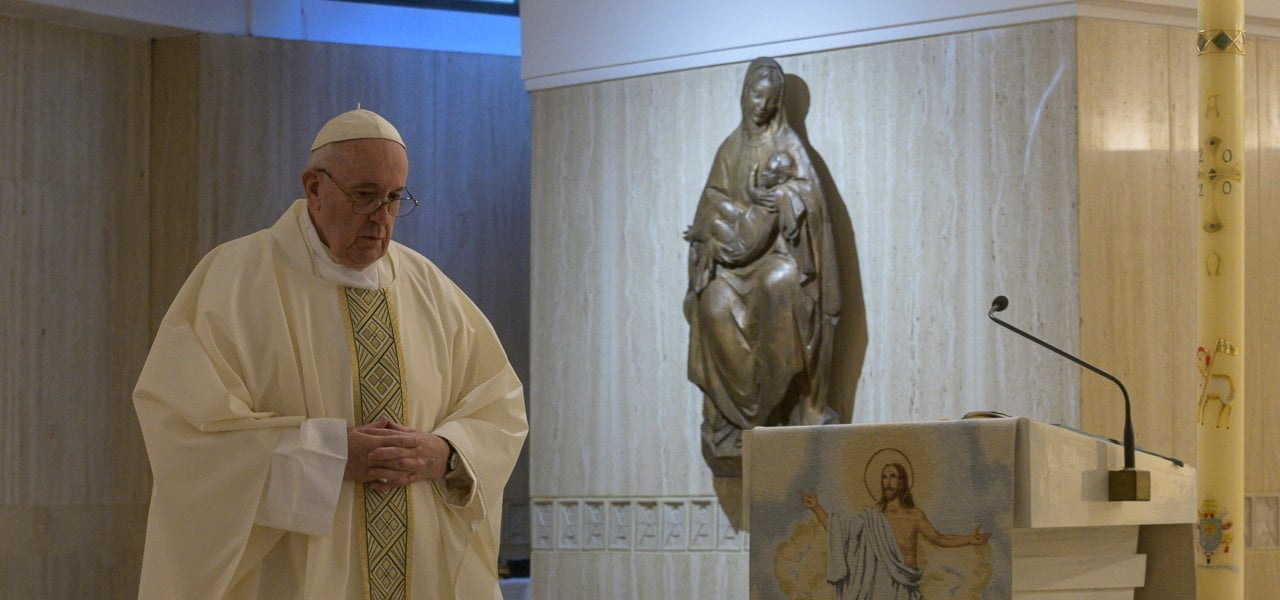 Nel corso dell’omelia poi dalla Cappella di Casa Santa Marta, Papa Francesco si è soffermato sulle letture del giorno e sulle piaghe del Cristo dopo la Croce: «Gesù prega per noi; prega davanti al Padre. Noi siamo abituati a pregare Gesù perché ci dia questa grazia, quell’altra, ci aiuti, ma non siamo abituati a contemplare Gesù che fa vedere al Padre le piaghe, a Gesù, l’intercessore, a Gesù che prega per noi. E Pietro è stato capace di fare tutta questa strada, da codardo a coraggioso, con il dono dello Spirito Santo grazie alla preghiera di Gesù». L’appello fiale è che Gesù insegni a ciascuno uomo e donna «di chiederGli la grazia di pregare per ognuno di noi».