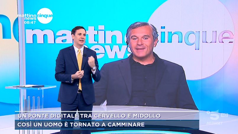 Valerio Rossi Albertini, fisico del CNR, è stato intervistato in collegamento stamane da Mattino 5 News per commentare l’incredibile caso dell’uomo paralizzato che è tornato a camminare grazie alla scienza e all’intelligenza artificiale: “E’ un ponte digitale, è una connessione che si instaura fra il cervello, la corteccia cerebrale, e il centro di comando delle azioni, che è il midollo spinale, il centro attuatore di impulsi e comandi. Noi abbiamo questi collegamenti di origine biologica – ha proseguito Valerio Rossi Albertini – nervi attraverso cui viaggiano impulsi elettrici, in assenza di questi si sostituisce il tutto con dispositivi digitali ed elettronici e questo hanno fatto i ricercatori. Fino a poco tempo fa avevano individuato un dispositivo che comandava le gambe, mentre adesso hanno fatto un passo ulteriore che collega il cervello al centro motore ed è una cosa che sa di miracolo”.