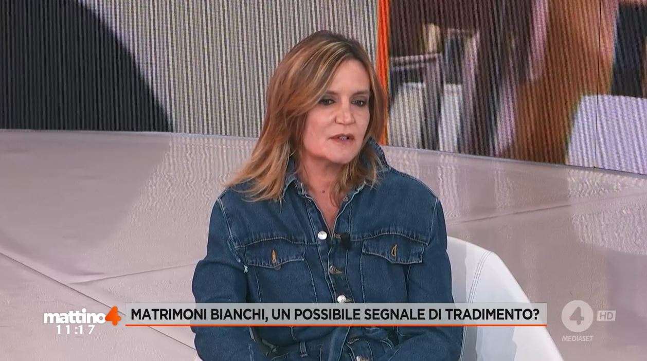 Patrizia Groppelli è stata ospite stamane del programma Mattino 4, su Rete Quattro, per parlare di matrimoni bianchi ma anche tradimenti. In collegamento vi era un investigatore privato e la moglie di Alessandro Sallusti ha spiegato: “Chi viene da lei sa già benissimo che sta suvendo delle corna, è solo per avere la prova provata, per un addebito di colpa per una futura seprazione, quando io fui tradita sapevo perfettamente che ero tradita, poi io non sono andata da un investigatore privato”, aggiunge Patrizia Groppelli con l’investigatore che però ha replicato: “Spesso e volentieri lo si fa per pura curiosità e gelosia”. Federica Panicucci, la conduttrice di Mattino4, ha quindi invitato Patrizia Groppelli a raccontare la sua storia: “Tu hai scoperto il tradimento ma perchè qualcuno te l’ha detto?”.