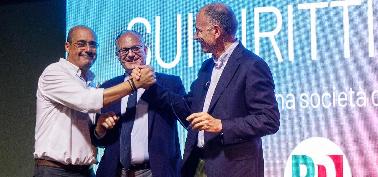 Pd a Roma: Nicola Zingaretti, Roberto Gualtieri ed Enrico Letta (LaPresse, 2022)