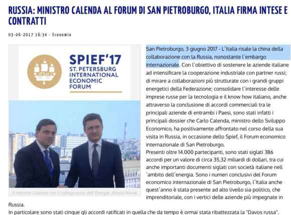 E chi erano, rispettivamente, presidente del Consiglio e titolare del Mise? Matteo Renzi e Carlo Calenda. I quali, sia ben chiaro, non hanno compiuto nulla di illecito. Anzi, hanno fatto il loro lavoro. Promuovendo un settore di particolare importanza ed eccellenza del made in Italy: le armi, appunto. Sapete benissimo che non sono un ipocrita, né tantomeno un pacifista: le armi esistono, i Governi le comprano, gli eserciti le usano. Pensare di metterle al bando equivale, a livello di realismo, al proposito di bloccare la pioggia per decreto ministeriale. Però, ci sono dei limiti. Soprattutto alla luce di questo, ovvero del fatto che lo stesso Carlo Calenda, in qualità di ministro dello Sviluppo economico, rilasciava interviste trionfanti rispetto al grado di penetrazione dell’industria italiana degli armamenti in Russia, nonostante le sanzioni internazionali già scattate per l’invasione della Crimea.