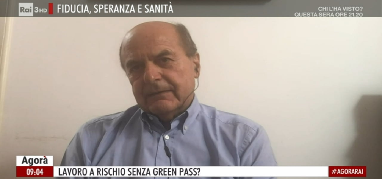Il futuro del Centrosinistra ma non solo, Pier Luigi Bersani a 360° ospite di Agorà. Il volto di Articolo 1 – MDP ha esordito commentando le ultime disposizioni del governo sul green pass: «Purtroppo ci è capitato fin dall’inizio di essere i battistrada, siamo stati il primo Paese dell’Occidente a essere colpiti da una malattia sconosciuta. Se siamo nei punti alti della vaccinazione in Europa, questo ha a che fare col green pass e con la sua gestione. Io ritengo sensato che si sia un dato ulteriore. Con la riapertura della scuola, una certa ripresa dei contagi c’è: per preservare la scuola mi sembra saggio estendere il certificato verde».