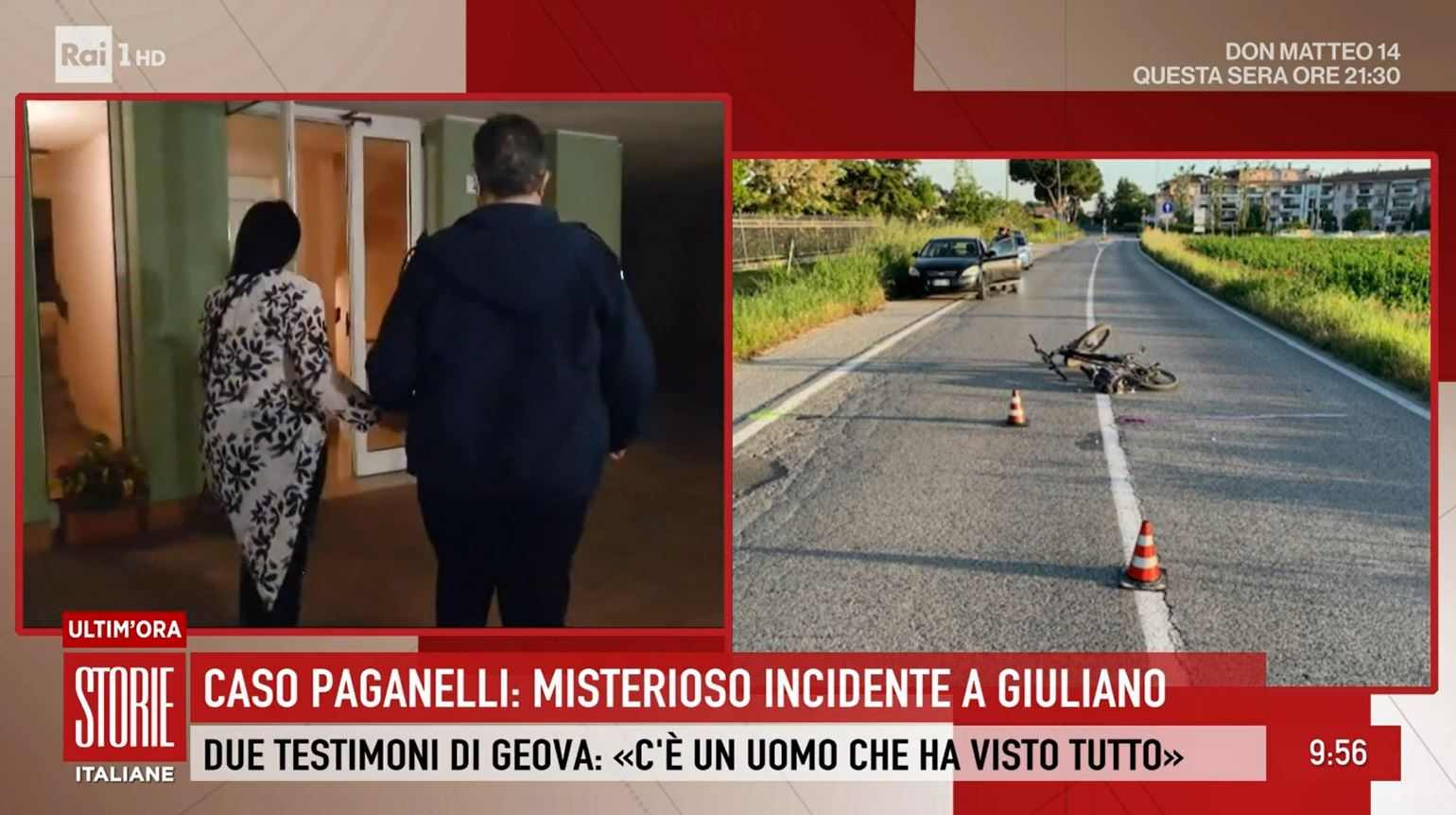 A Storie Italiane si apre stamane con il caso dell’omicidio di Pierina Paganelli e in particolare dell’incidente al figlio Giuliano Saponi: “Questi due testimoni di Geova – le parole dell’inviata del programma di Rai Uno, Monica Arcadio, in merito alle ultime novità sull’incidente del figlio – raccontano di conoscere una persona che ha visto cosa è successo quel 7 maggio, un furgone bianco da cui sono scese due persone che hanno aggredito violentemente Giuliano”.