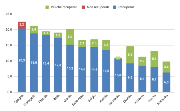 N.b.: il calcolo è effettuato al terzo trim. 2022, tranne Grecia, Olanda, Svizzera e Finlandia per i quali è effettuato al secondo.