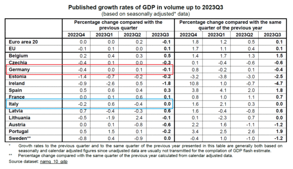 Nessun gaudio ma solo mal comune. I dati diffusi ieri da Eurostat hanno certificato, almeno in sede di stima, un generalizzato rallentamento economico dell’intero Vecchio continente e più in particolare del suo più circoscritto cuscinetto rappresentato dall’insieme dei Paesi appartenenti all’Eurozona o cosiddetta “Euro area 20”.