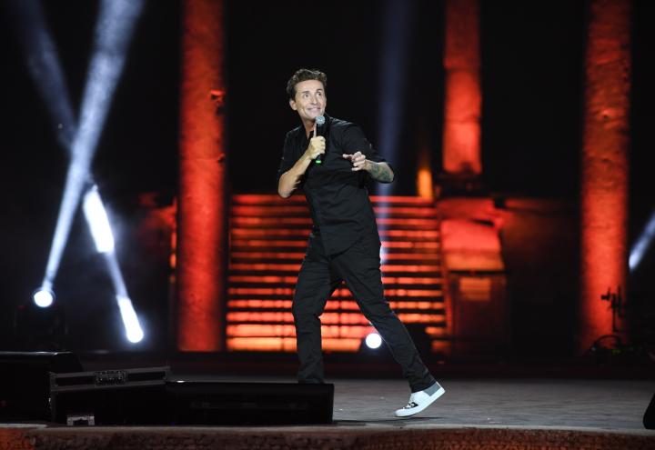 Angelo Pintus torna in tv con lo spettacolo Pintus @Ostia antica trasmesso venerdì 13 dicembre 2019 in replica su Italia 1. Uno spettacolo imperdibile, un one-man-show all’insegna del grande spettacolo presso la splendida cornice del Teatro Romano di Ostia Antica, dove Pintus mette in mostra il suo sfaccettato talento, alternando comicità, imitazioni, musica, canto e ballo. Uno show dedicato alla moglie Michela Sturaro che ha chiesto in sposa con una proposta di matrimonio assolutamente sorprendente andata in scena durante uno spettacolo tenutosi presso l’Arena di Verona. Si tratta del Pintus@Arena 2016 all’Arena di Verona, lo show trasmesso su Italia 1 che ha visto il comico triestino emozionare tutti i telespettatori e il pubblico con una inaspettata proposta di matrimonio. Per realizzare questa bellissima sorpresa alla compagna Michela Sturaro, Pintus si è fatto aiutare anche dal pubblico dell’Arena a cui sono stati consegnati dei cartoncini colorati di bianco e rosso che, uniti tutti insieme, formano un enorme cuore.