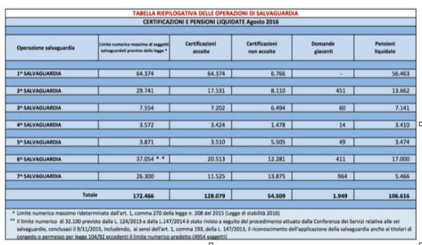 Ma vediamo in conclusione un po’ di dati riassuntivi del fenomeno, riportando di seguito la tabella riepilogativa delle operazioni di salvaguardia intervenute dal 2012 in poi. Come si può notare in tutte le salvaguardie le previsioni sono state più generose delle certificazioni accolte e delle pensioni erogate (nel complesso 106mila contro le 172mila programmate).