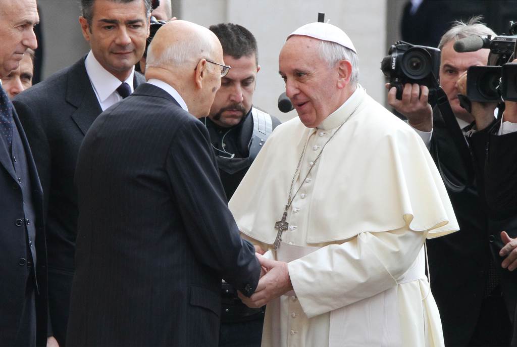 Giorgio Napolitano e papa Francesco (Infophoto)