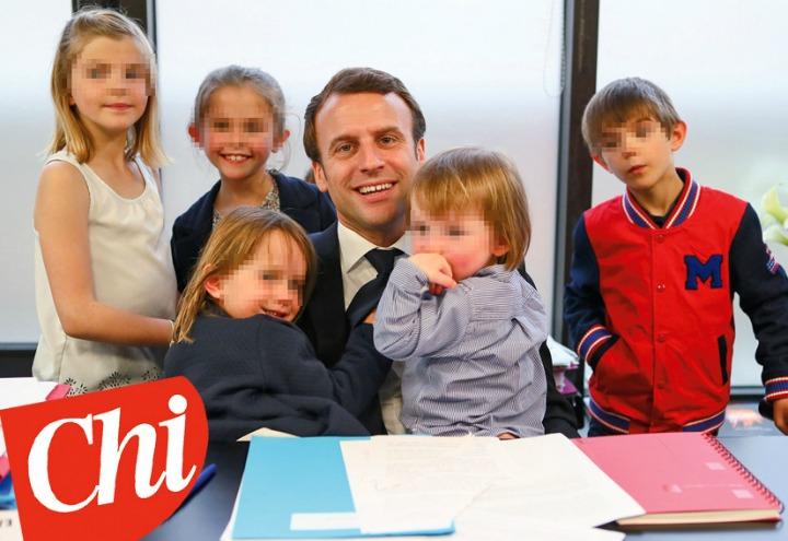 Emmanuel Macron, i nipoti della moglie Brigitte Trogneux "assaltano" il suo ufficio privato: il presidente "papà" e "nonno" tutto insieme a soli 39 anni, le foto di "Chi"