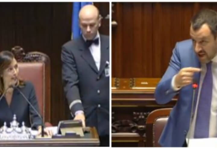 Il Pd reagisce iniziando a contestare ma la presidente di turno, per l’appunto Mara Carfagna, prende parola e zittisce il Ministro: «Signor ministro, le ricordo che sono in corso le commissioni in contemporanea con l’aula». A quel punto Salvini commenta con i suoi, «No, ma sto guardando a sinistra…» scatenando ancora più l’ira controllata della deputata azzurra, «Ministro, può anche guardare di fronte a sé, perché ci sono banchi vuoti anche nella maggioranza, per lo stesso motivo: sono in corso le commissioni parlamentari. E risponda nel merito. Non alimenti polemiche». Salvini a questo punto irritato per non essere stato “difeso” dalla “alleata” di Forza Italia, replica «E io la prego di lasciarmi parlare» scatenando ancora la reazione della Carfagna che con “tono e piglio boldinesco” sottolinea «Lei è libero di parlare ma non di attaccare il Parlamento. Le sembrerà strano ma le regole valgono anche per lei». Su Twitter, poco dopo, Giachetti loda l’intervento della Carfagna e spiega «In molti oggi plaudono alla serietà e autorevolezza con le quali @Mara_Carfagna ha condotto l’aula a difesa dell’istituzione che rappresenta. Lo considero un tardivo risarcimento allo schifo che le è stato versato addosso per anni da molti». Per un altro membro dem come Andrea Romano, il commento è più duro «Salvini, già europarlamentare assenteista, si presenta in aula alla Camera per offendere l’opposizione mentre le commissioni sono al lavoro. Questo il senso della democrazia del #Ministrodellapaura».