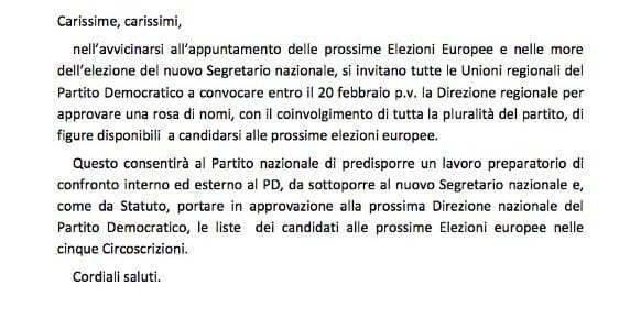 Orfini invita – o meglio, ordina – di dare avvio alla preparazione delle liste per le europee di maggio.