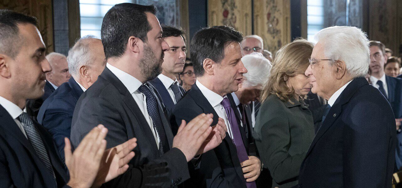 Luigi Di Maio, Matteo Salvini, Giuseppe Conte con il Capo dello Stato Sergio Mattarella (LaPresse)