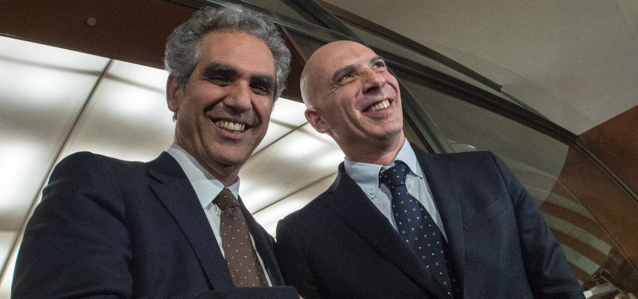 Il presidente Rai Marcello Foa con l'amministratore delegato Fabrizio Salini (LaPresse)