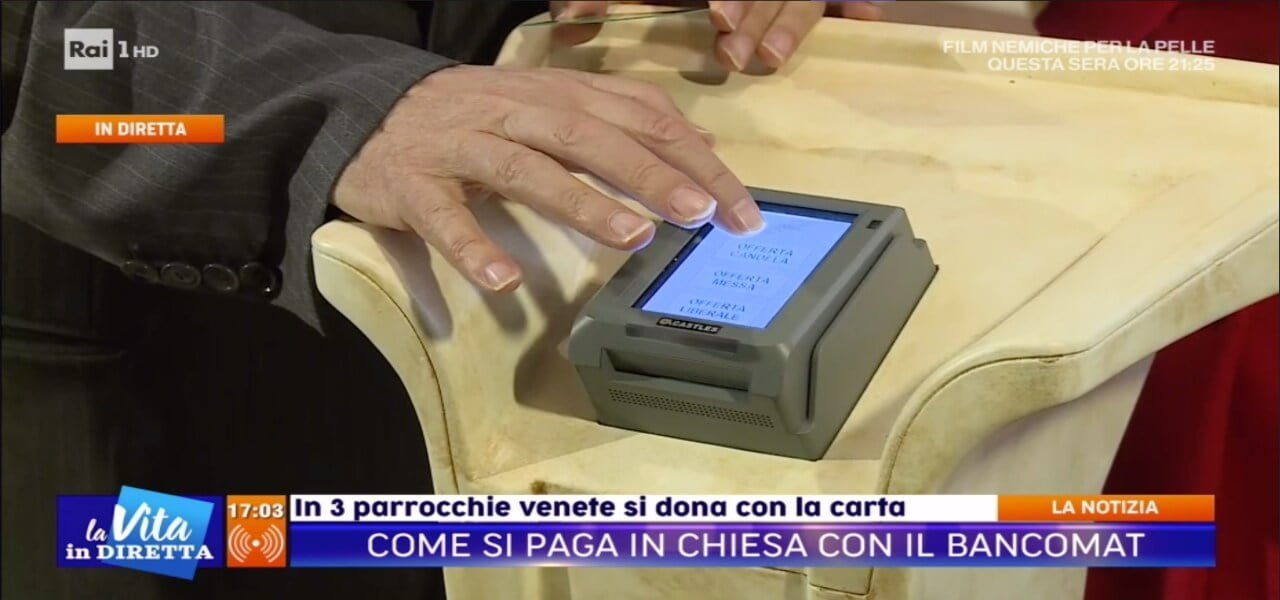 Come si paga in chiesa col bancomat (La Vita in Diretta)