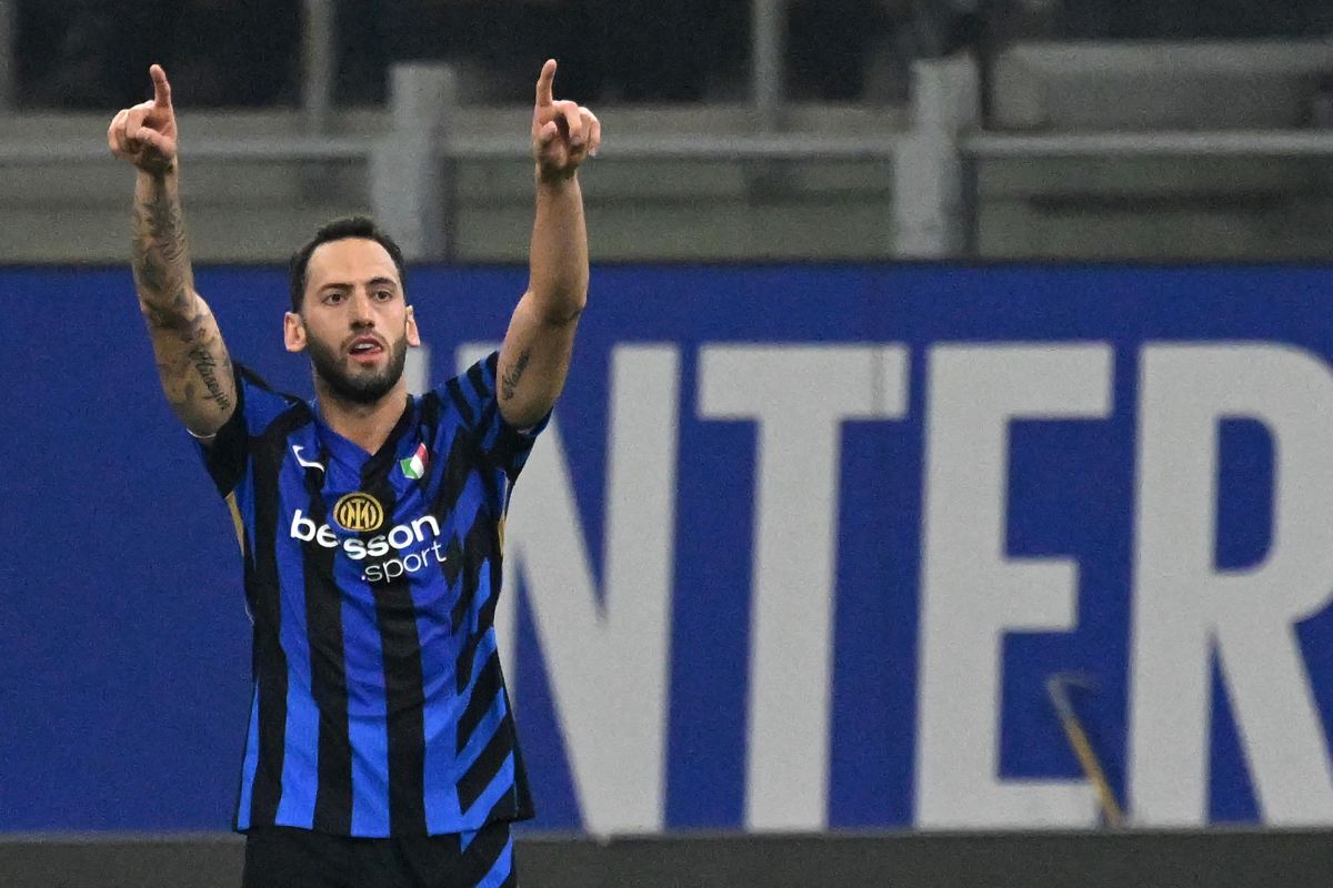 Hakan Calhanoglu esulta con l'Inter (Foto ANSA)