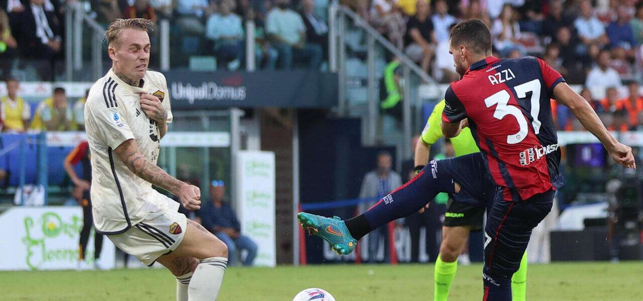 De Rossi conferma il 4-3-3 per Roma Cagliari, con una novità: a sinistra in difesa gioca Angeliño, acquisto potenzialmente di grande spessore. A destra è ballottaggio tra il favorito Karsdorp e Rasmus Kristensen, in mezzo invece solita coppia formata da Gianluca Mancini e Diego Llorente a protezione di Rui Patricio. A centrocampo le scelte di De Rossi sembrano fatte: ancora panchina per Leandro Paredes che comunque spera in una maglia, in cabina di regia dovrebbe andare Cristante con Edoardo Bove scelto per operare sulla mezzala, naturalmente con Lorenzo Pellegrini che giocherà sull’altro versante. Davanti è arrivato Baldanzi: una intrigante variante tattica, il giovane ex Empoli può fare anche l’esterno in un tridente e in questo senso parte chiaramente alle spalle del più navigato El Shaarawy, che dovrebbe essere il laterale a sinistra. Dall’altra parte, a proposito di adattarsi, avremo Dybala che avrà comunque facoltà di muoversi e svariare lungo tutto il fronte offensivo, avendo come riferimento avanzato Romelu Lukaku, a un solo gol dalla doppia cifra in campionato.