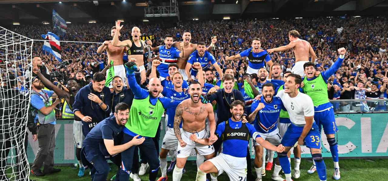 Giocatori della Sampdoria esultano (Ansa Foto)