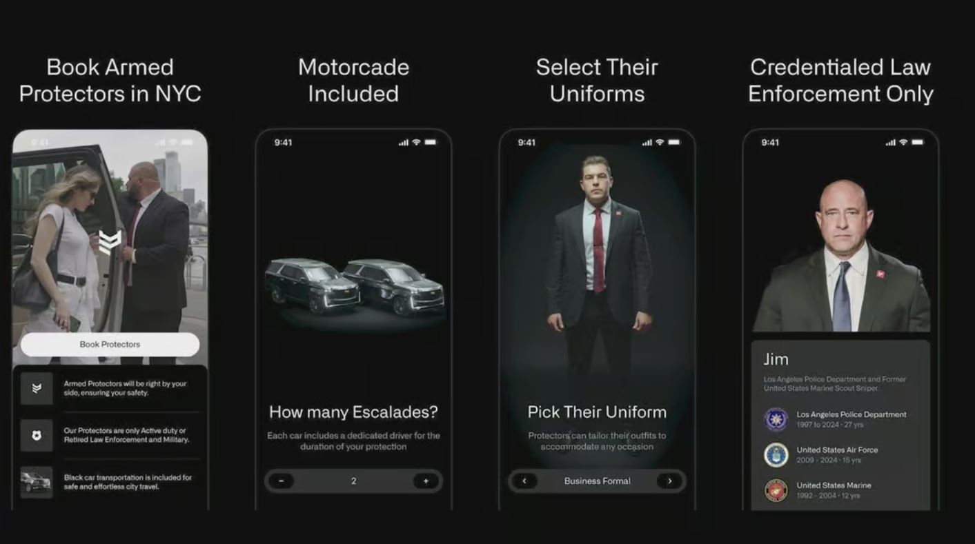 Il Corriere della Sera specifica che il servizio deve essere prenotato con almeno cinque ore di anticipo e con un prezzo da 100 dollari all’ora, mentre le auto su cui si viaggia vengono utilizzate delle Cadillac Escalade, mastodontici SUV, e se ne può ordinare più di una. Ma chi sono questi protector? Stando a quanto specifica l’applicazione, sono tutti veterani dell’esercito o ex delle forze dell’ordine, e fra le varie opzioni si può scegliere anche il dress code delle stesse guardie del corpo, quindi un abbigliamento casual o più militare.