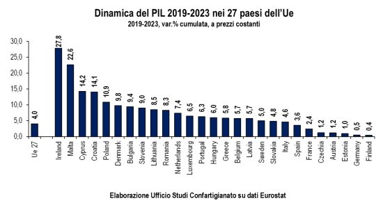 Nostre elaborazioni su dati Bce, Commissione europea, Confartigianato, Cpb, Eurostat, Fondo monetario internazionale, Governo tedesco, Istat e Ocse.