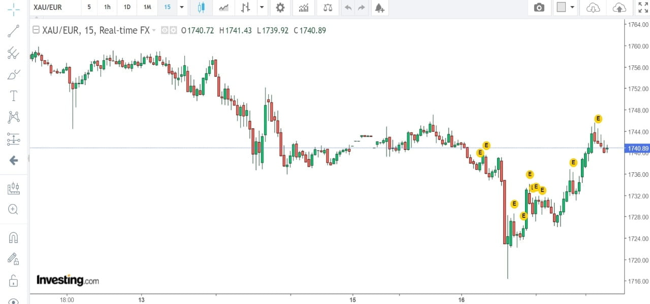 Prosegue il trend ribassista del gold che, dal 18 aprile scorso, ha smesso di segnare sempre nuovi massimi. L’apertura di oggi 16 maggio 2022 è avvenuta sostanzialmente in ribasso rispetto ai giorni scorsi: a partire dalla quotazione di 1741 euro l’oncia infatti, sono seguite due colonne rosse, fino alle ore 3 del mattino, in cui l’oro ha raggiunto la quotazione di 1716 euro l’oncia, per poi ritracciare nuovamente verso i livelli di apertura.