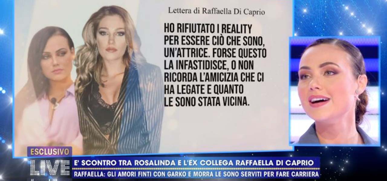 Già nel corso di un collegamento con la trasmissione Pomeriggio 5 dello scorso 14 gennaio, Raffaella Di Caprio aveva attaccato Adua Del Vesco commentando: “Deve smetterla di fare la vittima, nel senso che queste storie finte di gossip sono state create per farla emergere”. A quelle parole Rosalinda aveva già replicato asserendo di non aver mai negato “di aver cavalcato la cosa”, prendendosi le sue responsabilità: “Ho sempre detto che non sono vittima”, aveva detto proprio nel salotto serale di Barbara d’Urso, “Sono stata carnefice di me stessa probabilmente, tutto questo peso delle menzogne mi ha buttata giù psicologicamente perchè poi sono finita nell’anoressia”. E commentando le parole di Raffaella aveva aggiunto: “Magari aveva bisogno di sentirsi un attimo al centro dell’attenzione venendo qua e utilizzando me”.
