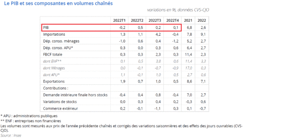 Guardando con attenzione gli ultimi dati economici, il rallentamento della Francia, potrebbe avvicinarsi (di molto) a questo potenziale scenario. Ieri, infatti, l’Insee (Institut national de la statistique et des études économiques) ha comunicato il dato definitivo del Pil del quarto trimestre del 2022 de “La Grande Nation” a noi vicina.