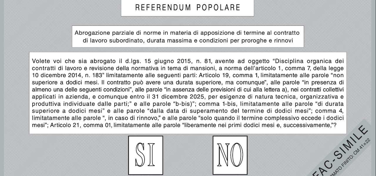 Utile ricordare, a livello generale — prima di passare al quesito sui contratti a termine e sulle eventuali conseguenze dell’approvazione — che, esattamente come tutte le altre consultazioni di questa tipologia, i Referendum 2025 saranno abrogativi: ciò significa che mirano a rimuovere alcune parti di determinate norme e, affinché possano apportare dei cambiamenti reali, chiedono di votare “Sì”; mentre il “No” lascia la normativa invariata ed è spesso sostituito dall’astensionismo, utile affinché non si raggiunga il quorum del 50%+1 degli elettori al voto.
