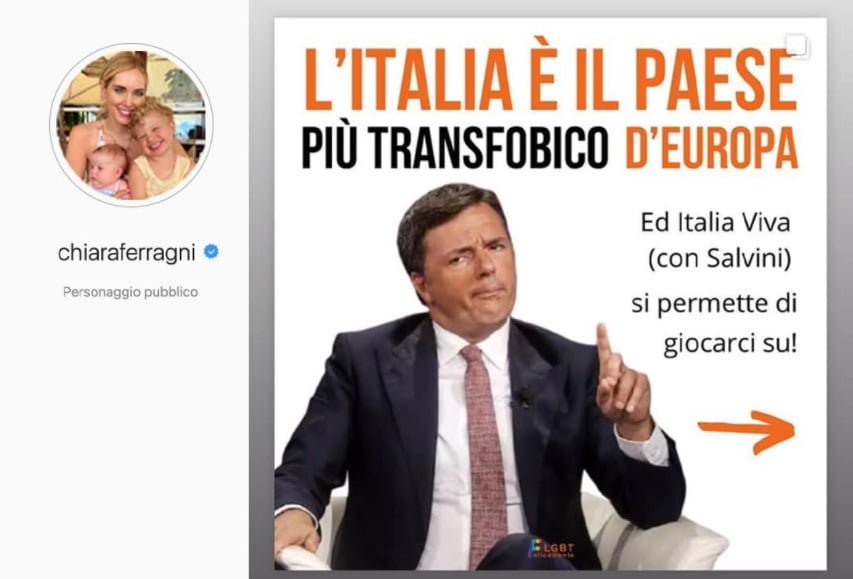 Acceso scontro a distanza tra Matteo Renzi e Fedez (con Chiara Ferragni) sul Ddl Zan. Un polverone generato da una storia pubblicata su Instagram dall’influencer più celebre dello Stivale, contenente una foto di Renzi e il seguente commento: “L’Italia è il Paese più transfobico di Europa. Ed Italia viva (con Salvini) si permette di giocarci su. Che schifo che fate, politici”. Inevitabilmente, queste parola non sono passate inosservate agli occhi del leader di Italia Viva, che quest’oggi ha inteso replicare sul suo profilo Facebook.