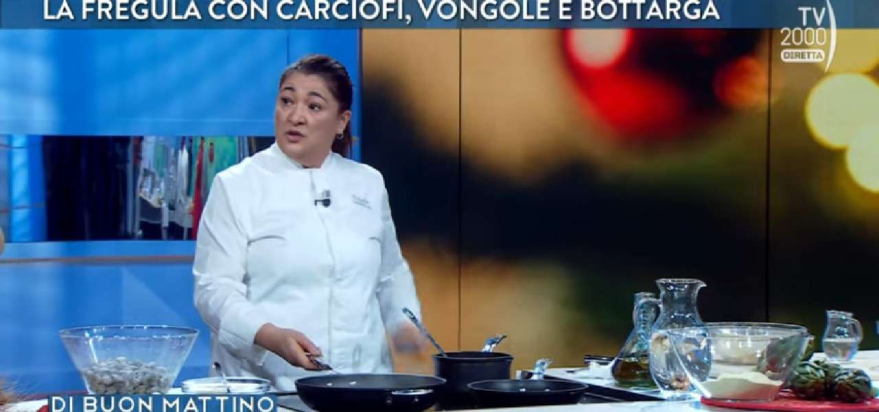 Ricetta di Natale tipicamente sarda, ora che la fregula è pronta può essere tostata, rigorosamente “in una padella antiaderente senza nessun grasso”, come spiega la chef Vitalia Scano a Di Buon Mattino. “Si tosta per qualche minuto finché non si sente l’odore di pane abbrustolito. Per questa ricetta si usa il carciofo spinoso sardo perché ha quel gusto di amaro e di dolce che non sovrasta né la vongola né la bottarga”. Dopo che la fregula è tostata, “nella stessa padella si aggiunge il brodo di pesce e poi anche i carciofi, che sono stati precedentemente scottati con lo spicchio di aglio. Anche le arselle o le vongole andranno scottate con uno spicchio di aglio e poi aggiunte nella stessa padella con la fregula e i carciofi”. A questo punto “prima di impiattare si aggiunge l’olio e poi si grattugia la bottarga essiccata”. E per questa ricetta di Natale la chef raccomanda assolutamente di non ricorrere alla bottarga in polvere.