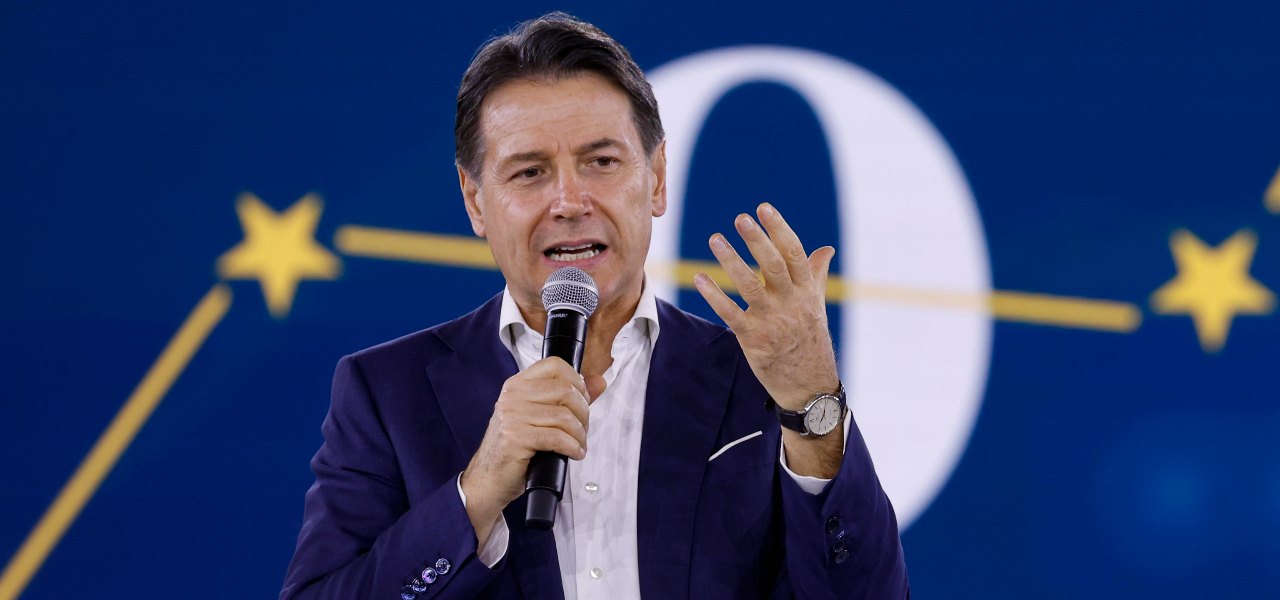 Giuseppe Conte, leader di M5s, durante l'assemblea costituente di M5s (Ansa)