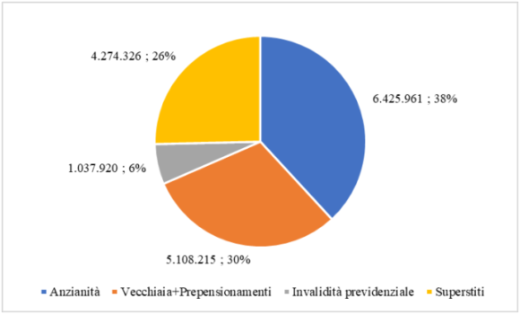 Le tipologie delle pensioni vigenti (elaborazione CdC su dati Inps)