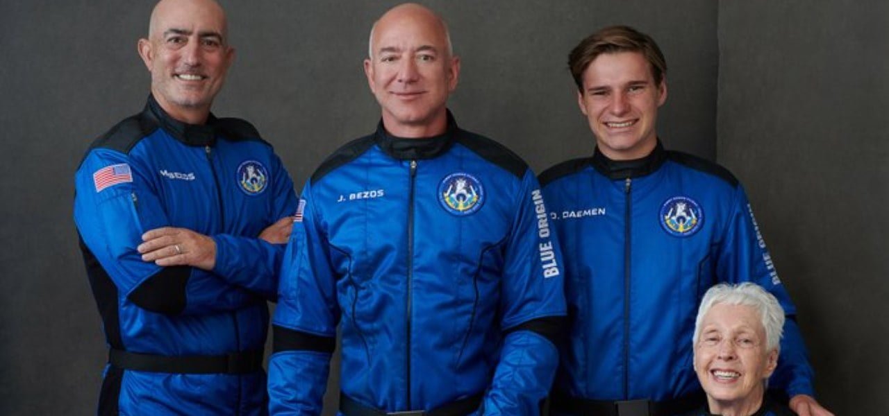Equipaggio New Shepard: Mark e Jeff Bezos, Oliver Daemen e Wally Funk (Twitter Blue Origin)