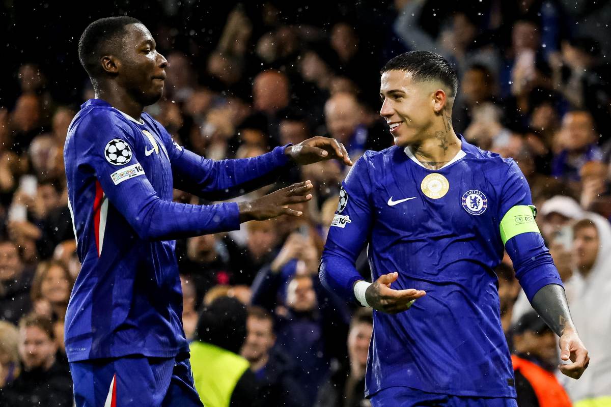 Enzo Fernandez esulta dopo il rigore trasformato per il Chelsea (Foto Ansa)