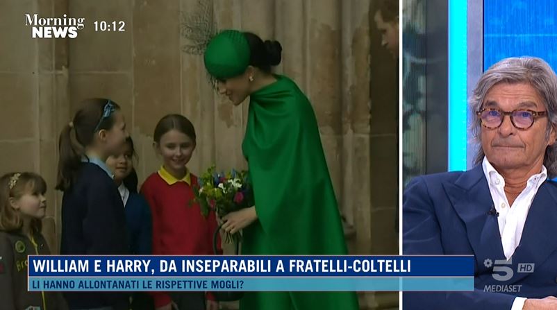 Il noto direttore di Novella 2000 e stimato giornalista Roberto Alessi, è stato ospite stamane negli studi del programma di Canale 5, Morning News, striscia mattutina quotidiana condotta dalla bella e brava Simona Branchetti. Si parla della famiglia reale d’Inghilterra, ed in particolare delle tensioni, che sembrano insanabili, fra i due fratelli-principi William e Harry: “Sta Meghan parla perchè ha la bocca di traverso – esordisce ironico Roberto Alessi – dire che la moglie di William vive in una realtà ingessata e non è libera… fa il lavoro di futura regina, ha un ruolo, a casa sua poi si rilassa”.
