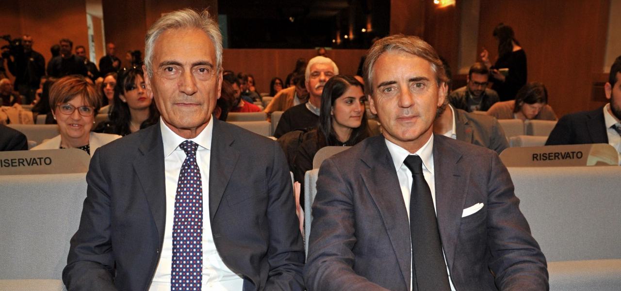 Nazionale italiana: Presidente Figc Gabriele Gravina e l'ex Ct Roberto Mancini (LaPresse)