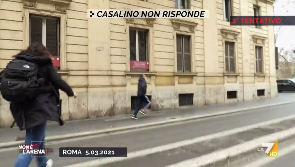 Fatto sta che la giornalista di Non è l’Arena non è riuscita a strappare nemmeno una parola a Rocco Casalino nonostante un paio di tentativi: “No no non si metta a correre – le parole dell’inviata come potete poi visionare nel video postato qui sotto – la prego, non ce la faccio mica a prenderlo”. E ancora: “Aspetti un secondo una domanda solo sul caso Benotti, no la prego non corra di nuovo, solo una domanda per favore, aspetti un attimo Casalino per favore”, niente da fare.