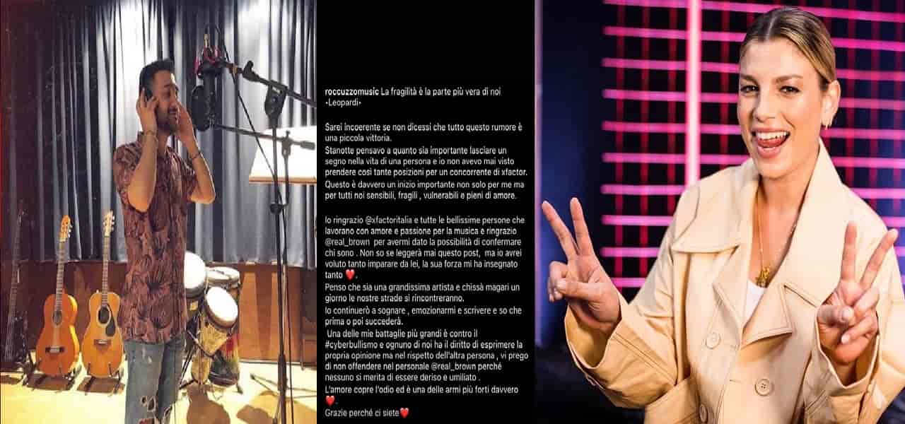 Roccuzzo rivolge un appello ai fans affinchè non offendino più Emma Marrone. Il nome di Roccuzzo era considerato tra i tre concorrenti che avrebbero partecipato ai live di X Factor 2020 con la squadra degli Under Uomini. Emma, però, ha ritenuto non ancora pronto Roccuzzo eliminandolo e scatenando la rabbia dei suoi fans contro di lei. Di fronte ai messaggi durissimi degli haters, Roccuzzo ha pubblicato un post con cui ha chiesto di mettere fine al cyber bullismo contro Emma. “Sarei incoerente se non dicessi che tutto questo rumore è una piccola vittoria” – esordisce Roccuzzo. Poi continua: “Ringrazio X Factor ed Emma Marrone per avermi dato la possibilità di confermare chi sono. Non so se leggerà mai questo post, ma avrei voluto tanto imparare da lei, la sua forza mi ha insegnato tanto. Penso che sia una grandissima artista e chissà, magari un giorno, le nostre strade si rincontreranno”. Infine rivolge un appello ai fans: “Ognuno di noi ha il diritto di esprimere la propria opinione, ma nel rispetto dell’altra persona. Vi prego di non offendere sul personale Emma Marrone perchè nessuno si merita di essere deriso e umiliato“.
