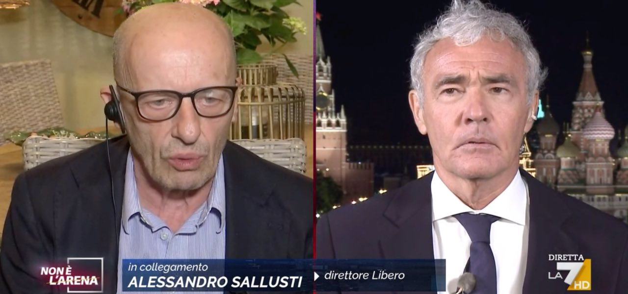Dura pochi minuti lo show di Alessandro Sallusti a Non è l’Arena, ma vale la pena di essere visto. Al termine dell’intervista a Maria Zakharova, portavoce del ministro degli Esteri russo Sergej Lavrov, ha preso la parola per rivolgere un’aspra critica. Poco prima di lui Myrta Merlino aveva duramente attaccato l’intervista di Zakharova, accusandola di aver sviato tutte le domande di Massimo Giletti. Ma la conduttrice ha usato il garbo che la contraddistingue. Invece il direttore di Libero si è lasciato andare ad una riflessione più dura nei toni, ma altrettanto condivisa, arrivando a salutare tutti e a interrompere il collegamento in diretta tv.