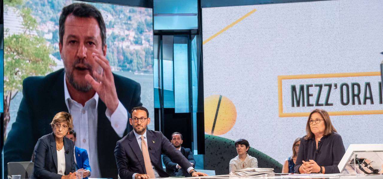 Collegamento turbolento quello tra Matteo Salvini e Lucia Annunziata ieri a Mezz’ora in più. Il leader della Lega non ha gradito il modo in cui è stata condotta la sua intervista, incentrata sui legami con la Russia anziché temi come pensioni e disabilità, importanti per gli italiani. Infatti, l’ex ministro dell’Interno a metà programma ha rinfacciato quanto avvenuto, lasciandosi andare ad un fuori onda, che però è stato sentito in studio perché il suo microfono era aperto: «Dimmi te se uno deve stare la domenica pomeriggio a parlare di Putin». A. quel punto, la conduttrice gli ha chiesto di condividere i suoi malumori con tutti: «È imbarazzante. Chi è a casa vorrebbe capire cosa facciamo tra venti giorni quando saremo al governo, invece stiamo a parlare di Salvini amico di Putin. Se questo è servizio pubblico… Gli italiani vogliono parlare di lavoro, di scuola, voi state qua a parlare di Russia, sarà mica normale… Prendo atto del fatto che i primi venti minuti sono stati su Salvini amico di Putin e sul gas».