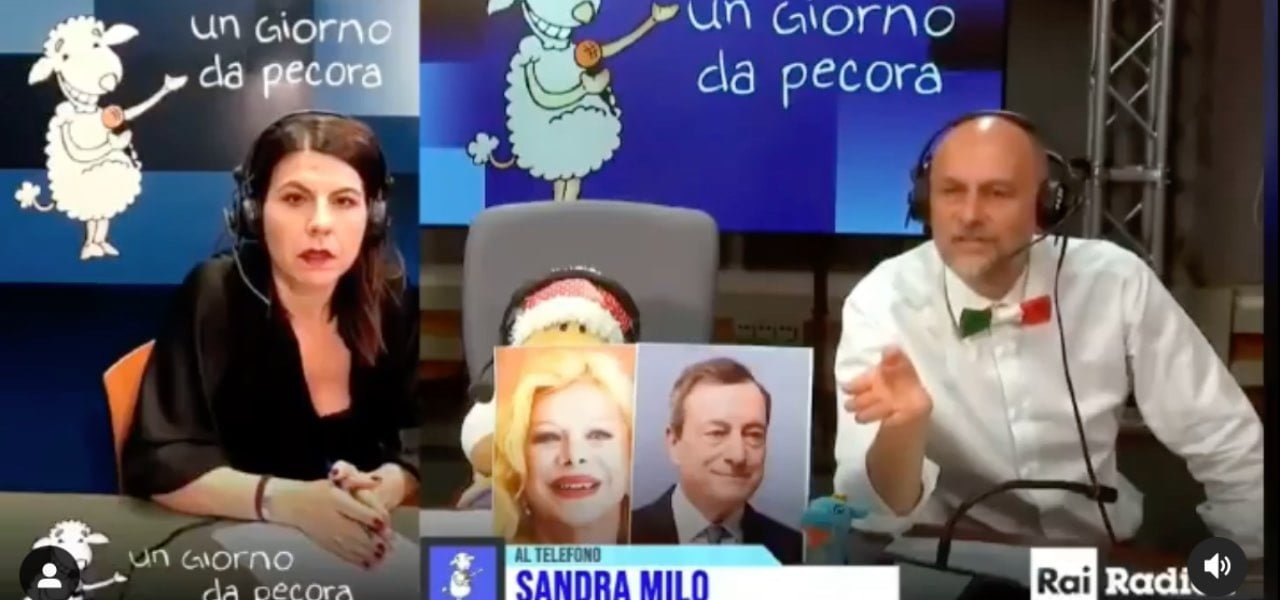 Sgomenti i due conduttori radiofonici, che cominciano a chiamarla: “Come Sandra?”, “Signora Milo?”. Allora chiedono aiuto in regia per capire se si può contattare la figlia per capire se è al corrente di quanto stava accadendo e quindi anch per chiedere aiuto. Clicca qui per audio Un giorno da pecora.
