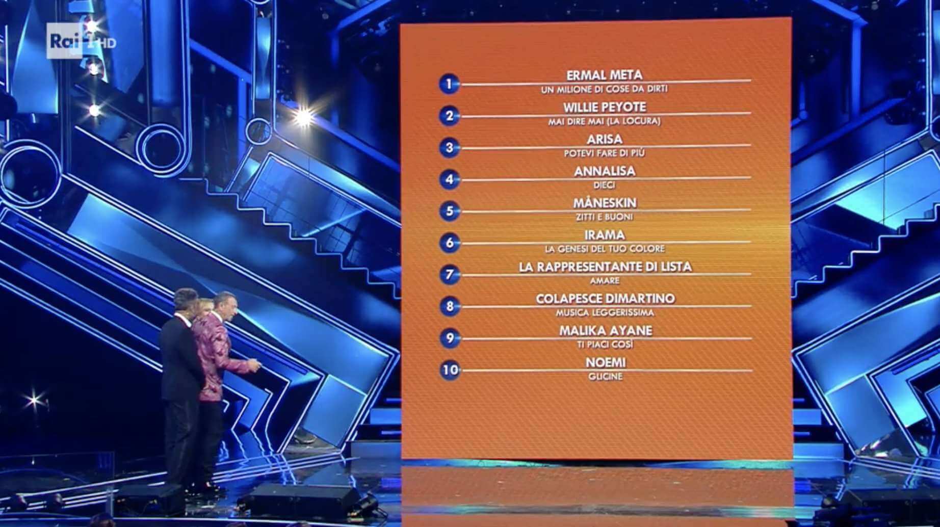 la #classifica (solo) della #quarta serata di #Sanremo2021 pic.twitter.com/z6a6ho8HBy