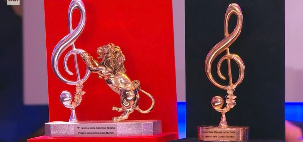 Sanremo: il Premio della critica Mia Martini (sx) e il Premio della Sala Stampa 'Lucio Dalla' (dx)